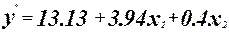 Проверка адекватности модели по коэффициенту детерминации или множественной корреляции. Коэффициент детерминации :