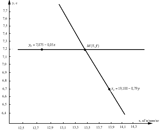1. при х = 12,8 кГм/мин/кг у =7,235 с » 7,2 с; 2. при у = 6,7 с х = 13,895 с » 13,9 кГм/мин/кг.
