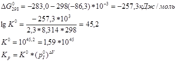Ответ.lgKp=55,87. №2 В данной реакции ΔV=2-3=-1, поэтому выражение для Кх примет вид: