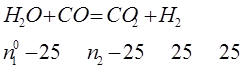 n0 –начальное количество (число молей) водяного пара. Константа равновесия этой реакции будет выражаться уравнением: