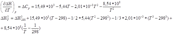 По справочнику [M] находим зависимость теплоёмкости веществ от температуры