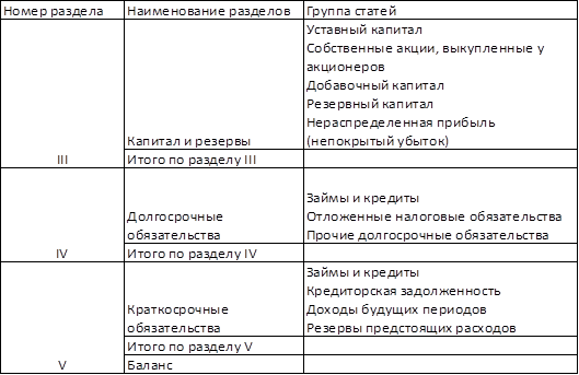 3.2. Содержание статей балансаРассмотрим кратко содержание каждого раздела бухгалтерского баланса: Раздел I. Внеоборотные активы. · Статья «Нематериальные активы» содержит остаточную стоимость активов (произведения науки, литературы и искусства; программы для ЭВМ; изобретения; селекционные достижения; ноу-хау; товарные знаки и другое.) Так же могут отражаться «Учет расходов на НИОКР». · Статья «Основные средства» содержит остаточную стоимость активов (имущества). · Статья «Незавершенное строительство» содержит остатки по счетам 07 «Оборудование к установке», 08 «Вложение во внеоборотные активы», а так же авансовые платежи связанные с осуществлением капитальных вложений (счет 60) · Статья «Доходные вложения в материальные ценности» содержит остаточную стоимость этих ценностей (счет 03), отражаются вложения организаций в здания, помещения, оборудование и другие ценности, имеющие материально-вещественную форму и предоставляемые организацией за оплату во временное пользование с целью получения дохода. · Статья «Долгосрочные финансовые вложения» содержит учтенные на счете 58 «Финансовые вложения» (сумма инвестиций организации на срок более одного года в ценные бумаги, в уставные капиталы др. организаций) · Статья «Отложенные налоговые активы» - положительная разница между налогом на прибыль, подлежащему к уплате в бюджет в соответствии с декларацией и условным расходам по налогу на прибыль, начисленным от бухгалтерской прибыли. Раздел II. Оборотные активы · По группе статей «Запасы» отражается стоимость остатков всех материально производственных запасов и затрат организации. · Статья «Сырье, материалы и др. аналогичны ценности» содержит остатки по счетам 10 «Материалы» и 16 «Отклонения в стоимости материальных ценностей». · Статья «Затраты в незавершенном производстве» отражает стоимость остатков продукции, которая не прошла все стадии технологической обработки, а так ж е изделий, не прошедших испытаний (счета: 20, 21, 23, 29, 44, 46) · Статья «Готовая продукция и товары для перепродажи» должна содержать фактическую или нормативную себестоимость остатка произведенной продукции. (счета 41, 43) · Статья «Товары отгруженные» содержит фактическую себестоимость отгруженных товаров, если в момент отгрузки товаров выручка не была признана в бухгалтерском учете. · Статья «Расходы будущих периодов» содержит затраты понесенные организацией в отчетном периоде, но относящиеся к её деятельности в будущем (расходы на лицензии, сертификаты, ремонт осн.средств и т.д.). Счет 97. · Статья «НДС по приобретенным ценностям» содержит сумму остатка НДС которая не списана со счета 19. · Четыре статьи в бухгалтерском балансе отведены для отражения дебиторской задолженности. Стр.230 отражает задолженность платежи по которой ожидаются более чем через 12 мес. После отчетного года. Стр. 231 содержит задолженность покупателей и заказчиков. Стр. 240 показывает задолженность, погашение которой ожидается в течении года после отчетной даты, из этой суммы также выделяется задолженность покупателей и заказчиков – Стр.241 · Статья «Краткосрочные финансовые вложения» содержит остатки по счетам 58, 59, 81. · Статья «Денежные средства» содержит сумму наличных и безналичных средств, числящихся на дату составления баланса в кассе на расчетных и валютных счетах, а также денежн