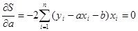 Покажем, как можно подобрать прямую (15) так, чтобы сумма квадратов S была минимальной. Из уравнений (16) и (17) получаем: