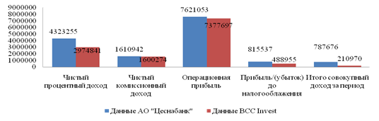 Вывод о финансовой независимости и устойчивости деятельности банка можно сформулировать, основываясь на показателях коэффициента автономии и финансовой устойчивости. Как видно, значения этих показателей имеют устойчивую тенденцию к снижению и, начиная с 2007 года, становятся ниже рекомендуемых. Исходя из этого, следует, что к концу анализируемого периода деятельность банка становится финансово зависимой от внешних источников финансирования. [25] Данные, приведенные в таблице 4, показывают снижение доходов, но увеличение прибыли. По результатам последнего отчета банка о совокупном доходе, период которого соответствует 2008–2009 г., процентный доход банка снизился на 4 процента. Таблица 4. Анализ доходов и расходов АО «Цеснабанк» тыс. тенге