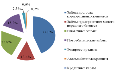 Рисунок 5. Структура кредитного портфеля на конец 2009 г. По данным последнего аудиторского отчета, процентное соотношение резервов под обеспечение ко всему ссудному портфелю оценивалось на уровне шести с половиной процентов. Данный показатель почти в три раза увеличился по отношению к данным за 2007 год, однако был примерно равен данным на конец 2008 года и по нашему мнению остался на том же уровне в течение всего прошлого отчетного периода. По данным Агентства РК по регулированию и надзору финансового рынка и финансовых организаций уровень безнадежных и проблемных активов 5‑й категории АО «Цеснабанк» в 2009 году достигало достаточно низких значений по сравнению со средними показателями всего банковского сектора. [23]
