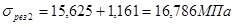 Результирующее напряжение в сечении: