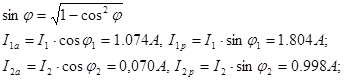 В соответствии с балансом активной и реактивной мощностей под P, Q, S, cosφ следует пони-мать также активную, реактивную и полную мощности источника электрической энергии и его коэффициент мощности. Величины активной и реактивной составляющих токов приемников (см. рис. 2):
