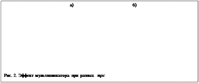 и, следовательно, мультипликатор, тем больший прирост дохода даст одинаковое увеличение расходов). Это проиллюстрировано на рис.2. На рис.2 (б) предельная склонность к потреблению (mрс