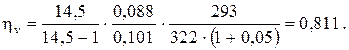 где Т о – температура воздушного заряда на входе в двигатель, Т о = 293 К [2]; Dt – подогрев рабочего тела в цилиндре от стенок в конце наполнения, Dt = 15 °C [2]; Тr – температура выпускных газов, Тr = 800 К [2]; gr – коэффициент остаточных газов, gr = 0,05 [2].