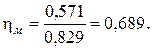 Среднее давление механических потерь равно: Рм = 0,103 + 0,012 · 12,92 = 0,258 МПа. Среднее эффективное давление определяется по формуле: Ре = Рi – Рм ; (7.3) Ре = 0,829 – 0,258 = 0,571 МПа. Механический КПД двигателя определяется по формуле:
