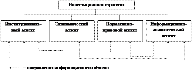 Рис. 1.3. Инвестиционная стратегия как система Институциональный аспект инвестиционной стратегии представляет собой совокупность таких основных составных частей как: виды инвестиций, инвестиционный портфель, риски. В рамках институционального аспекта выделяются основные управляемые подсистемы, существующие в корпоративных инвестициях (рис. 1.4).