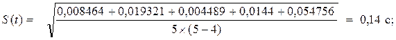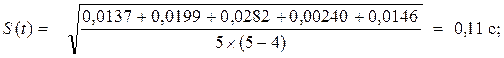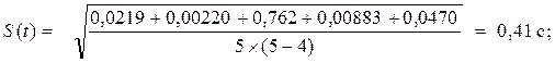 Так, как на миллисекундомере не обозначен класс точности прибора и он является цифровым, то его погрешность составляет 1 единица младшего разряда, т. е. 0.001 с. Тогда общая погрешность для каждой из точек составит: Для первой точки измерения (S1): Δ(х)= 0,392+0,001=0,393. Для второй точки измерения (S2): Δ(х)= 1,148+0,001=1,149. Для третьей точки измерения (S3): Δ(х)= 0,392+0,001=0,393. Для четвертой точки измерения (S4): Δ(х)= 0,532+0,001=0,533. Для пятой точки измерения (S5): Δ(х)= 0,308+0,001=0,309. Таблица4.4 Общая погрешность для каждой точки измерения