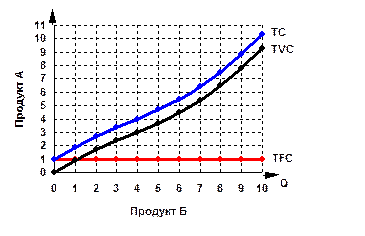 Вопрос 10. Виды издержек производства: постоянные, переменные и общие, средние и предельные издержки. Каждая фирма в определении своей стратегии ориентируется на получение максимальной прибыли. В то же время любое производство товаров или услуг немыслимо без затрат. На приобретение факторов производства фирма осуществляет конкретные затраты. При этом она будет стремиться использовать такой производственный процесс, при котором заданный объём производства будет обеспечиваться с наименьшими затратами на применяемые факторы производства. Затраты на приобретение применяемых производственных факторов называются издержками производства . Затраты - это расходование ресурсов в их физическом, натуральном виде, а издержки - стоимостная оценка произведенных затрат. С точки зрения отдельного предпринимателя (фирмы) выделяют индивидуальные издержки производства , представляющие собой затраты конкретного хозяйствующего субъекта. Затраты, понесенные на производство определённого объёма какой-то продукции, с точки зрения всей национальной экономики есть общественные издержки . Кроме непосредственных затрат на производство какого-либо ассортимента продукции, они включают в себя затраты на охрану окружающей среды, подготовку квалифицированной рабочей силы, проведение фундаментальных НИОКР и иные затраты. Различают издержки производства и издержки обращения. Производственные издержки - это издержки, непосредственно связанные с производством товаров или услуг. Издержки обращения - это издержки, связанные с реализацией произведенной продукции. Они подразделяются на дополнительные и чистые издержки обращения. Первые включают в себя расходы на доведение произведенной продукции до непосредственного потребителя (хранение, расфасовка, упаковка, транспортировка продукции), увеличивающие конечную стоимость товара; вторые - расходы, связанные со сменой формы стоимости в процессе купли-продажи, превращением её из товарной в денежную (оплата труда торговых работников, расходы на рекламу и т.п.), не образующие новой стоимости и вычитаемые из стоимости товара. Постоянные издержки TFC - это такие издержки, величина которых не изменяется в зависимости от изменения объёма производства. Наличие таких издержек объясняется самим существованием некоторых производственных факторов, поэтому они имеют место даже тогда, когда фирма ничего не производит. На графике постоянные издержки изображаются горизонтальной линией, расположенной параллельно оси абсцисс (рис. 1). К постоянным издержкам относят затраты на оплату труда управленческого персонала, рентные платежи, страховые взносы, отчисления на амортизацию зданий и оборудования.