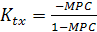 Данное уравнение показывает, что ВНП зависит и от величины налогов, которые устанавливает государство. Кроме того, в экономике действуют эффекты мультипликации, т.к. данное уравнение включает: