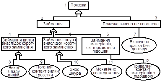 Рис.8.2. Дерево відмов для небезпечної події "пожежа" Складаємо логічне вираження для визначення ймовірності головної події: