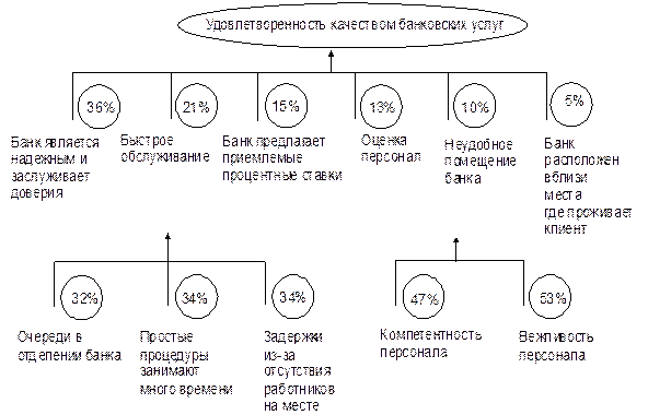 1.2 Виды услуг В зависимости от связи с движением материального продукта банковские услуги подразделяются на два вида: 1) услуги связанные с его движением, 2) чистые услуги. Поскольку банки своими денежными операциями обслуживают главным образом движение материального продукта, их основная часть бесспорно относится к первому виду услуг. Способствуя продвижению товаров, данные услуги банка (такие как, например, услуги предприятиям транспорта, связи, торговли) создают новую дополнительную стоимость. Чистые услуги предоставляются организациям, занятым непосредственно материальным производством, а также отдельным гражданам для удовлетворения их личных потребностей. Как отмечалось, продуктом банка являются различного рода услуги. В отличие, к примеру, от продукта промышленного предприятия банковский продукт не выглядит зачастую как нечто материальное, вещественное. Кредиты и расчеты совершаются в порядке записей по счетам, в безналичной денежной форме. Поэтому в отличие от отраслей материального производства, где продукт приобретает конкретную товарную форму, банковский продукт нельзя складировать, производить про запас. Важнейшим свойством банковских услуг является их производительный характер. Уже в такой простейшей Форме, как прием от населения и предприятий во вклады, заключен огромный производительный смысл. Банк просто собирает деньги - он превращает "неработающие", неиспользуемые денежные ресурсы в работающие активы. В равной степени это относится к кредитам, предоставляемым предприятиям и организациям на развитие своей производственной и финансовой деятельности. Так или иначе банковские операции обслуживая хозяйственную деятельность своих клиентов, способствуют развитию и ускорению производства. Характерным свойством банковских услуг является и то, что их объектом выступают не просто деньги, перемещаемые в огромных суммах с помощью каналов банковской связи с одного счета на другой, из одного региона (предприятия, сектора экономики) в другой. Движение по счетам предприятий - это преимущественно движение капиталов в денежной форме [1]. 2 Показатели качества услуг, процессная модель оказания услуг и расхождение между потребителем и поставщиком "Качество – это еще не все, но все становится ничем без качества". Эти слова принадлежат двум американским ученым – экономистам Т. Perers и R. Waterman, и они особо актуальны сегодня для банковского сектора Украины. Наилучшие информационные технологии в банке, новейшие защитные мероприятия, даже наибольший капитал значат немного, когда цельный банковский организм не работает качественно и не руководствуется стратегией, которая направлена на достижение наибольшего качества банковских услуг . Исследования, проведенные в 2005-2006 г. г. PriceWaterhouse, показали, что высокое качество банковских услуг и банковского обслуживания, особое внимание к клиентам, является решающим фактором, которые побуждают их оставаться клиентами банка на протяжении многих лет и рекомендовать его другим. Европейские банкиры считают, что курс на повышение качества банковского обслуживания является неотъемлемой чертой современного рынка. Вопрос качества услуг в банковских учреждениях в современное время остается особо актуальным. Мировой опыт анализа качества банковских услуг показывает, что есть м