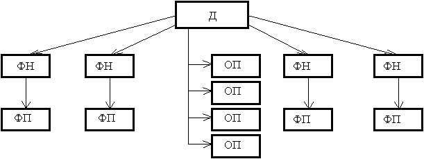 Д- директор; ФН - функциональные начальники; ФП - функциональные подразделения; ОП – основные производственные подразделения