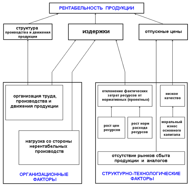 Хозяйственная структура предприятия может считаться оптимальной в том случае, когда все подразделения предприятия дополняют основное производство и обеспечивают его функционирование, при этом все они работают с максимальной эффективностью с целью достижения конечного результата, каким может считаться выпуск конкурентоспособной рентабельной продукции. При этом следует иметь ввиду, что чаще всего заготовительные цехи основного производства, вспомогательное производство не производят товарную продукцию, а работают в условиях внутренней кооперации. Поэтому критерии оценки их работы должны отличаться. На рис. 1.1.3 приводится обобщенная схема факторов эффективности функционирования подразделений крупного предприятия, которые мы намерены рассматривать в дальнейшем.