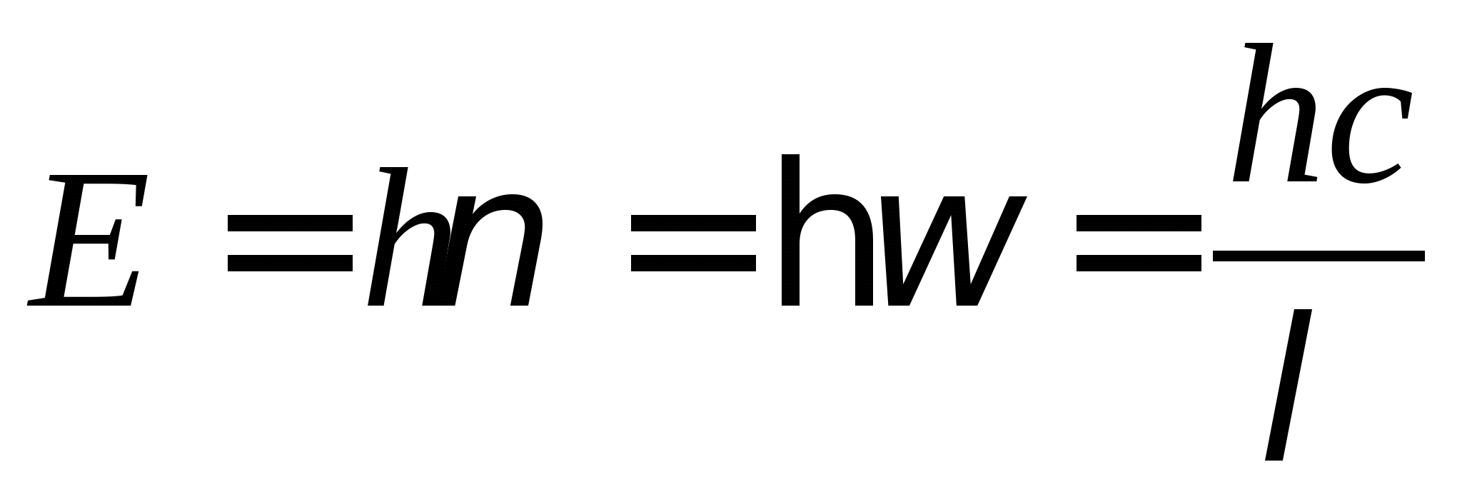 Фотоны. В теории равновесного излучения абсолютно черного тела Планка вводится понятие фотона – кванта света или порции излучения, которая может поглощаться или излучаться только целиком. С другой стороны, по средствам фотонов осуществляется электромагнитное взаимодействие. Энергия фотона Рассмотрим фотон в покоящейся и движущейся системах отсчета. Энергия в покоящейся системе Фотоэффект Фотоэффект наблюдается при передаче энергии фотона электрону, находящемуся вещества, то есть связанному электрону. Поглощение фотона электроном может привести либо к перераспределению электронной плотности в веществе, либо к вырыванию электрона с поверхности вещества. В связи с этим, для различных материалов имеют место два вида фотоэффекта: для металлов – внешний, для диэлектриков и полупроводников – внутренний (в частности, в полупроводниках наблюдается один из видов внутреннего фотоэффекта – вентильный). При внутреннем фотоэффекте валентные электроны либо становятся электронами проводимости, что наблюдается в полупроводниках, либо переходят на более высокий энергетический уровень, оставаясь в связанном состоянии. Внешним фотоэффектом называется явление вырывания электронов с поверхности металлов. Энергия фотона, падающего на поверхность металла, переходит валентному электрону Экспериментально фотоэффект описывается законами Столетова: Фототок насыщения не зависит от частоты падающего света, а определяется только его интенсивностью Задерживающее напряжение не зависит от интенсивности, а определяется только частотой падающего света Для любого металла существует минимальная частота, называемая красной границей, при которой только начинается фотоэффект Теоретически закон внешнего фотоэффекта описывается выражением, представляющим собой закон сохранения энергии: С учетом законов Столетова Световое давление Квант света, попадая на поверхность, передает ей импульс. При отражении от поверхности переданный импульс равен удвоенному импульсу фотона Эффект Комптона При отражении высокоэнергичных рентгеновских лучей от металлических поверхностей наблюдается изменение их длины волны. Такое явление имеет место только при отражении от металлов, следовательно необходимо рассмотреть взаимодействие фотона с электроном проводимости металла. Как известно, валентные электроны в металле обобществляются и их можно считать свободными, то есть способными перемещаться под действием внешних полей. Р По закону сохранения энергии Спектр водорода. Формула Бальмера. Постулаты Бора. В конце 19 начале 20 веков бурно развивалась спектроскопия. Самым простым для изучения материалом является водород, поэтому наибольшее число работ было посвящено изучению спектров атома водорода. Исследуемые спектры были линейчатыми. Особенность водородных спектров заключалась в том, что линии излучения и поглощения располагались группам, которые были названы сериями. Одна из спектральных серий лежит в видимой области, одна – в ультрафиолетовой, остальные – в инфракрасной.Частоты спектральных линий хорошо описывались обобщенной формулой Бальмера. Где R = 3,291015 с-1 – константа Ридберга, а n и m – целые числа. Аналогичная формула имеет место для длин волн, где R = 1,10107 м-1: Целое число m определяет спектральную серию: n = 1 серия Лаймана n = 2 серия Бальм
