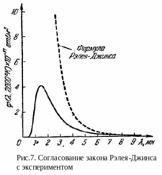 ривые на рис. 4 очень похожи на кривые распределения молекул газа по скоростям. Правда, есть и существенное отличие. В то время как кривые распределения по скоростям для разных температур пересекают друг друга (охватываемые ими площади одинаковы), кривые спектрального распределения излучения абсолютно черного тела для более низких температур целиком лежат внутри кривых, соответствующих более высоким температурам (как мы увидим в следующем параграфе, площадь, охватываемая этими кривыми, пропорциональна четвертой степени температуры).