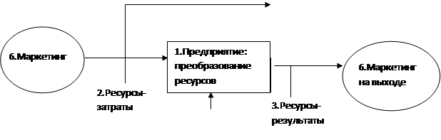 Рис.1 Рыночная модель предприятия. Рассмотрим схему рис. 1 более детально. Выше уже отмечено, что в условиях рынка предприятие решает две задачи — произвести продукцию и реализовать ее. В зависимости от решения этих задач оно будет процветать или станет несостоятельным. Для того чтобы знать, что необходимо производить — какой ассортимент, в каком количестве — предприятие должно изучить рынок, прежде чем начнет расходовать ресурсы для изготовления конкретной продукции, т.е. заняться маркетингом. Причем маркетингом необходимо заниматься постоянно — как до запуска продукции в производство, так и после, в процессе реализации продукции. Поэтому на схеме маркетинг показан до начала производства и после его окончания. Для принятия решений необходимо собрать и проанализировать достоверную информацию, которая включает: • характеристику товаров: являются они товарами конечного потребления или промежуточными, готовыми изделиями или полуфабрикатами, необходима служба сервиса или нет, приемлема ли цена потребителю, каковы цели у конкурентов; • общую характеристику рынка: большое или малое число потребителей, способы покупки товаров, отношение покупателей к товарам, условиям и срокам поставки, условия продажи у конкурентов; • каналы распространения товаров: наличие посредников между производителями и потребителями, их количество; • конкретное состояние рынка: существует ли конкуренция между производителями товаров и каков ее уровень; • законодательные ограничения: существуют ли законодательные ограничения, которые могут препятствовать маркетинговой деятельности; • уровни управленческой деятельности в области маркетинга: долговременные цели фирмы (на 10—15 лет), учитывающие ситуацию на внутреннем и внешних рынках и тенденции ее развития; • финансовые, материальные и иные ресурсы, необходимые для достижения этих целей; • перспективные (до 5 лет) цели фирмы, возникающие при этом задачи и обеспеченность их необходимыми ресурсами; • оперативные, текущие цели и задачи, выдвигаемые конъюнктурой рынка, не противоречащие долговременным стратегическим целям. В производстве продукта и осуществлении маркетинговой политики необходимо учитывать жизненный цикл продукта на рынке, который включает ряд стадий: • внедрение, требующее больших затрат, поэтому торговля товаром на этой стадии, как правило, убыточна; • рост как результат признания покупателем товара и быстрого увеличения спроса на него. При росте объема продаж и соответственно прибыли стабилизируются расходы на рекламу; • зрелость характерна тем, что большинство покупателей товар уже приобрели, поэтому темпы роста продаж, достигнув максимума, начинают падать, прибыль также начинает снижаться в связи с увеличением расходов на рекламу и другие маркетинговые мероприятия; • насыщение: в этом периоде, несмотря на принятые меры, рост продаж больше не происходит. Прибыль от торговли продолжает увеличиваться из-за снижения расходов на производство; • спад представляет собой период резкого снижения продаж, а затем и прибыли. Вернемся к блоку 2 на рис. 1. Предприятие на входе потребляет ресурсы определенного вида, чтобы потом в результате производственного процесса на выходе получить трансформированные ресурсы, ресурсы иной потребительной стоимости.
