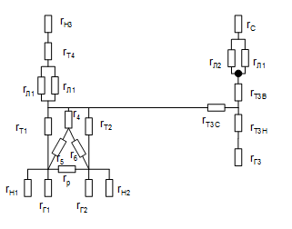 В силу особенности протекания токов нулевой последовательности схема замещения нулевой последовательности существенно отличается от схемы замещения прямой последовательности. Различие, в первую очередь определяется схемами замещения линий электропередач и трансформаторов. Параметры всех элементов считаются постоянными, ЭДС нулевой последовательности принимается равной нулю.