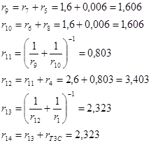 Продолжаем выполнять сворачивание схемы путем объединения параллельных и последовательных сопротивлений: