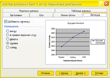 - Окрываем вкладку "Ряд", имя ряда - кликаем на ячейку "Будущая стоимость", подписи оси ох - выделяем названия банков