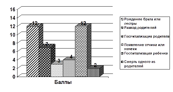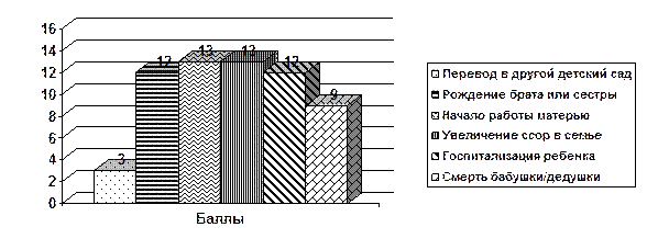 Рис. 2.1.1 Типичные стрессовые ситуации дошкольников Нами были проанализированы ответы родителей и определены травматические события, которые по «Шкале стресса у детей Ш. Льюиса» имеют наиболее сильное стрессовое воздействие. Данные представлены в рисунке (Рис.2.1.2)