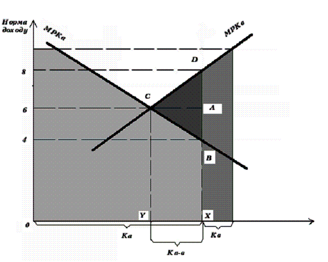 Рис. 1.6 Графіки попиту на інвестиції двох країн
