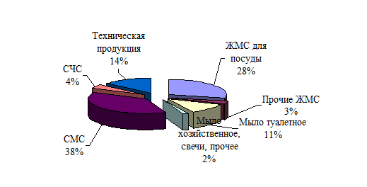 ОАО «Нэфис Косметикс» является одним из четырех крупнейших производителей синтетических моющих средств на территории Российской Федерации, на долю которых по итогам 2007 года пришлось 84,9 % продаж стиральных порошков в городах по всей России, в том числе: - «Procter&Gamble» – 46,7%; - «Henkel» – 26,5%; - «Benckizer» – 5,9%; - ОАО «НэфисКосметикс» – 5,7% Продукция Комбината занимает первое место по продажам стиральных порошков среди российских производителей и четвертое место после мультинациональных компаний «Procter&Gamble» , «Henkel» и «Benckizer». Следует отметить, что на сегодняшний день порошкообразные моющие средства выпускают около 70 отечественных предприятий. Однако, несмотря на динамичное развитие рынка СМС, большинство из них не выдерживают конкуренции и значительно сокращают объемы своих продаж. Доля присутствия на рынке других российских производителей в настоящее время составляет в среднем менее 10%. Продажи ОАО «Нэфис Косметикс» в настоящее время день преобладают в дешевом ценовом сегменте: «Sorti» - один из наиболее известных и узнаваемых стиральных порошков среди покупателей. Благодаря своим превосходным моющим свойствам, «Sorti», с момента своего появления на российском рынке, занял одну из лидирующих позиций среди качественных недорогих синтетических моющих средств по доступной цене. В то же время, следуя тенденциям развития конъюнктуры рынка синтетических моющих средств, когда к средствам для стирки предъявляются новые повышенные требования, ОАО «Нэфис Косметикс» постепенно увеличивает объемы реализации более дорогих стиральных порошков («АОS», «BiMax»). Можно выделить следующие основные тенденции на российском рынке порошкообразных синтетических моющих средств: а) вытеснение второстепенных игроков рынка основными производителями. В связи с тем, что большинство российских предприятий ведены в эксплуатацию, самое позднее, в 80-х годах прошлого столетия и износ их основного производственного оборудования весьма значителен, предполагается, что замедление темпов роста «чисто» российскими предприятиями будет все более заметно; б) происходит переориентация от потребления стиральных порошков для ручной стирки на потребление стиральных порошков для автоматических стиральных машин. Производители уже сейчас отмечают, что рост объемов продаж и производства в сильной степени происходит за счет СМС для автоматических стиральных машин. в) увеличение использования крупной тары порошкообразных. Данная тенденция связана как с увеличением благосостояния населения, так и с развитием организованного ритейла на территории России. Таким образом, потенциал современного рынка СМС весьма велик. По мнению аналитиков, в течение ближайших нескольких лет российский рынок СМС вырастет более чем в 10 раз. При темпах роста 10-12% в год в 2010 году он превысит уровень в 1000 тыс. тонн. При этом уровень потребления россиянами стиральных порошков приблизится к отметке 8 кг СМС в год.