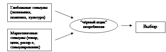 Рис. 1. Модель «Стимул − реакция» Слева − побудительные факторы двух типов. Побудительные факторы маркетинга включают в себя четыре элемента: товар, цену, методы распространения и стимулирования. Прочие раздражители − глобальные стимулы: экономика, политика и культура. Пройдя через «черный ящик» сознания покупателя, все эти раздражители вызывают определенную реакцию со стороны потребителя, главным образом выражающаяся через выбор товара, марки, дилера, времени покупки и объема покупки. Задача деятеля рынка – понять, что происходит в «черном ящике» сознания потребителя между поступлением раздражителей и проявлением откликов на них. Сам «черный ящик» состоит из двух частей. Первая – характеристики покупателя, оказывающие основное влияние на то, как человек воспринимает раздражители и реагирует на них. Вторая часть − процесс принятия покупательского решения, от которого зависит результат. Теперь необходимо рассмотреть этапы, которые покупатель преодолевает на пути к принятию решения о покупке и ее совершению. Процесс покупки начинается с того, что покупатель осознает проблему или нужду. Он чувствует разницу между своим реальным и желаемым состоянием. Нужда может быть возбуждена внутренними или внешними раздражителями. На этом этапе деятелю рынка необходимо выявить обстоятельства, которые обычно подталкивают человека к осознанию проблемы. Следует выяснить: 1.) Какие именно ощутимые нужды или проблемы возникли; 2.) Чем вызвано их возникновение; 3.) Каким образом вывели они человека на конкретный товар. Возбужденный потребитель может заняться поисками дополнительной информации. Если побуждение оказывается сильным, а товар, способный его удовлетворить, легкодоступен, потребитель скорее всего совершит покупку. Если нет, то нужда может просто отложиться в его памяти. При этом потребитель может либо прекратить поиски информации, либо поискать еще немного, либо заняться активными поисками. В поисках информации потребитель может обратиться к следующим источникам: · личные источники (семья, друзья, знакомые); · коммерческие источники (реклама, продавцы, упаковка, выставки); · общедоступные источники (средства массовой информации); · источники эмпирического опыты (осязание, изучение, использование товара). Относительное влияние этих источников информации варьируется в зависимости от товарной категории и характеристик покупателя. Каждый вид источников может по-разному сказываться на принятии решения о покупке. Самыми эффективными являются личные источники. Потребитель использует информацию для того, чтобы составить для себя комплект марок, из которого производится окончательный выбор. Вопрос заключается в том, как именно совершается выбор среди нескольких альтернативных марок, каким образом потребитель оценивает информацию. Для оценки вариантов можно выделить несколько основных понятий, с помощью которых она совершается. Во-первых, существует понятие о свойствах товара. Каждый потребитель рассматривает любой данный товар как определенный набор свойств. Больше всего человек обращает внимания на свойства, которые имеют отношение к его нужде. Во-вторых, потребитель склонен придавать разные весовые показатели значимости свойствам, которые он считает актуальными для себя. Можно провести различие между важностью т