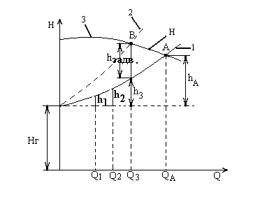 Нн =Н г +hпот. =Н г +SQ2 – учитывая квадратичную зависимость потерь