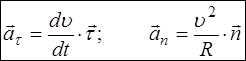 Таким образом, проекции вектора ускорения равны вторым производным законов движения. А как найти касательное и нормальное ускорения? Они являются результатом разложения вектора полного ускорения по направлениям касательной и нормали: