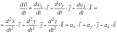 По определению ускорением материальной точки называется первая производная по времени скорости движения, т.е. вторая производная по времени радиус-вектора: