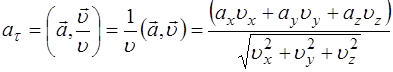 Первое слагаемое связано только со скоростью изменения величины скорости движения. Т.к. эта часть полного ускорения направлена по касательной, то она называется касательным