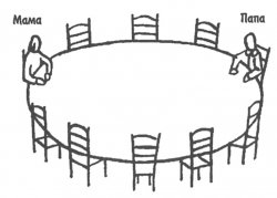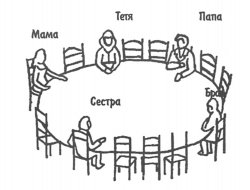 4. А теперь размести несколько человек и себя вокруг этого стола. Обозначь их родственные отношения (папа, мама, брат, сестра) или (друг, товарищ, одноклассник).