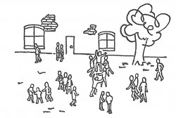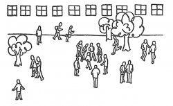 17. Теперь на этом рисунке размести несколько человек и себя. Нарисуй или обозначь крестиками. Подпиши, что это за люди.