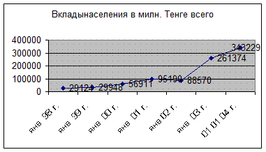 *Источник: вестник Национального банка Республики Казахстан. Таблица 2.1. Вклады населения в период с 1998 по 2003 гг.