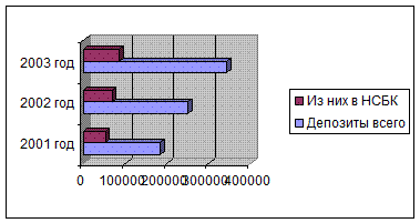 *Источник: Агентство РК по статистике. Диаграмма 2.12. Доля депозитов населения в НСБК в период с 2001 по 2003 гг.