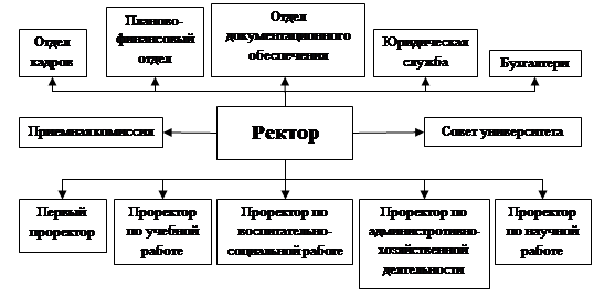 Схема 1: Структура управления университетом Как видно из схемы, непосредственное управление университетом осуществляется ректором. Ректор несет персональную ответственность за сохранность и использование имущества, действует от имени университета и руководит научной, образовательной и хозяйственной деятельностью, организует работу ректората, подписывает основные приказы университета, является председателем Ученого совета, а так же осуществляет контроль за расходованием денежных средств и т.д. Ректор распределяет обязанности по руководству деятельностью Университета между своими заместителями – проректорами. Высшим органом управления Университетом является Конференция. Основной функцией Конференции является обеспечение соблюдения Университетом целей и задач, для достижения и выполнения которых он был создан. Конференция состоит из членов коллектива Университета, делегированных в её состав в порядке, предусмотренном Уставом. Она созывается по мере необходимости, но не реже одного раза в год. Правом созыва Конференции обладает Ученый совет. Общее управление в университете осуществляется Ученым советом. Ученый совет – это выборочный представительный орган. В состав Ученого совета входят ректор, который является председателем Ученого совета и проректоры Университета.Другие члены Ученого совета избираются Конференцией большинством голосов от общего числа присутствующих на заседании Конференции делегатов при тайном голосовании. Состав Ученого совета объявляется приказом ректора. Срок полномочий Ученого совета – 5 лет. Ученый совет решает большинство важнейших вопросов, касающихся деятельности и функционирования университета. 1.2. Учебный процесс при подготовке экономистов-менеджеров Факультет экономики и управления Камчатского государственного технического университета основан в 1994 году и является одним из ведущих центров Камчатского края по подготовке квалифицированных специалистов в области экономики и управления. Обучение на данном факультете сочетает как теоретическое, фундаментальное образование, так и специальную прикладную подготовку. Большое внимание уделяется развитию у студентов навыков аналитической работы и творческого мышления. Все это позволяет выпускникам быстро и успешно приспосабливаться к меняющимся требованиям профессиональной деятельности. В структуру экономического факультета входит6 кафедр: бухгалтерский учет и финансы, история и философия, менеджмент, психология и педагогика, экономика и управление, филология. На факультете осуществляет свою деятельность аспирантура, которая осуществляет подготовку по специальности «Экономика и управление народным хозяйством». Кафедра «Экономики и управления» - основное учебно-научное, структурное подразделение университета, сотрудники которой обеспечивают на высоком уровне учебный процесс по экономическим дисциплинам, закреплёнными за кафедрой; проводят научно-методическую работу по одной или нескольким близким дисциплинам, научные исследования по профилю кафедры, подготовку научно-педагогических кадров и повышение их квалификации; осуществляют нравственное воспитание студентов в процессе реализации образовательных программ. Кафедру «Экономики и управления» возглавляет Заведующий кафедрой, имеющий, как прави