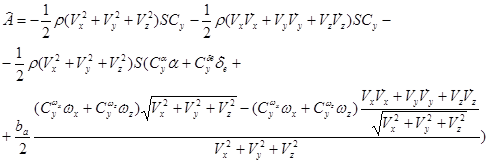 где q – скоростной напор; S – площадь крыла самолета; cx, cy, cz – аэродинамические коэффициенты сил.