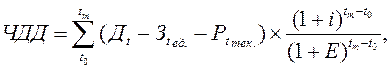 Величина чистого дисконтированного дохода без учета единовременных затрат будет рассчитана по формуле: