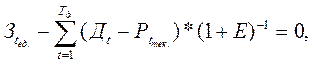 Для определения ВНД необязательно знать заранее норму дисконта, поскольку ее находят обычным подбором показателей. Если уравнение ВНД не имеет положительных решений или имеет более одного такого решения, то ВНД подобного проекта не существует. Если расчет ЧДД дает ответ на вопрос, является ИП эффективным или нет при некоторой заданной норме дисконта (Е), то ВНД проекта определяется в процессе расчета и затем сравнивается с требуемой инвестором нормой дохода на вкладываемый капитал. В случае, когда ВНД равна или больше требуемой инвестором нормы дохода на капитал (Е), инвестиции в данный проект оправданы, и может рассматриваться вопрос о его принятии. В противном случае инвестиции в данный проект нецелесообразны. Таким образом, формула расчета ВНД проекта строительства кафе ООО «Техснаб-кафе» будет иметь вид:
