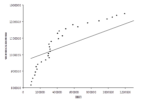 Рисунок 6 Корреляционное поле зависимости численности населения от ВВП