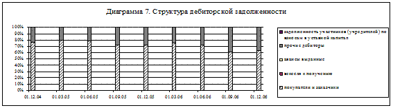 Как видно из данных баланса более половины стоимости имущества составляют основные средства. Основные средства должника представлены объектами недвижимости, оборудованием, транспортными средствами. Балансовая стоимость основных средств – 14499 тыс. руб. ОАО «ИПП «Курск» практически не имеет денежных средств на расчетном счете и в кассе, что, безусловно, препятствует эффективному функционированию предприятия – следствием недостатка денежных средств может быть не только увеличение задолженности по денежным обязательствам и обязательным платежам, но возникновение значительных сумм задолженности перед персоналом по заработной плате. Однако, ситуация на самом деле более позитивна, так как обнадеживает ситуация с существенным размером краткосрочной дебиторской задолженности, ее высокая оборачиваемость на предприятии в течение квартала. Согласно бухгалтерскому балансу вся дебиторская задолженность на 30.06.2007 года составляет 6647 тыс. руб.