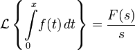 Изображением по Лапласу интеграла от оригинала по аргументу является изображение оригинала деленное на свой аргумент.