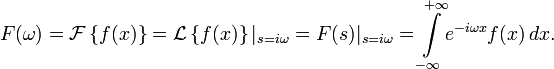 Преобразование Фурье Непрерывное преобразование Фурье эквивалентно двустороннему преобразованию Лапласа с комплексным аргументом s = iω: