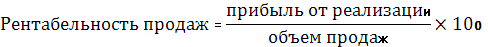 Рентабельность продаж (оборота) показывает, какую прибыль имеет предприятие с каждого рубля реализованной продукции, рассчитывается по формуле: