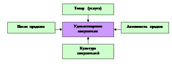 Рис.4. Этапы процесса закупки товаров промышленного назначения Продавцу товаров промышленного назначения необходимо знать: кто основные участники решения; на принятие каких решений сказывается их влияние; какова относительная степень значимости этого влияния; какими оценочными критериями пользуется каждый из участников процесса принятия решения. Вопрос 2. Сущность потребительского решения о покупке как оценка различных атрибутов продукта В работе «ThecustomerisKey» (Wiley, 1991) рассматривается совокупность факторов полезности, характеризующих степень удовлетворения покупателя (рис.5).